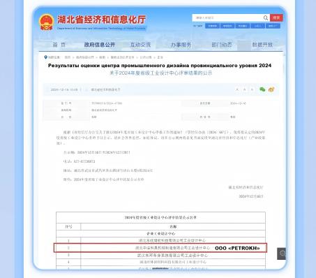 PETROKH признана как «Центр промышленного дизайна провинциального уровня 2024»